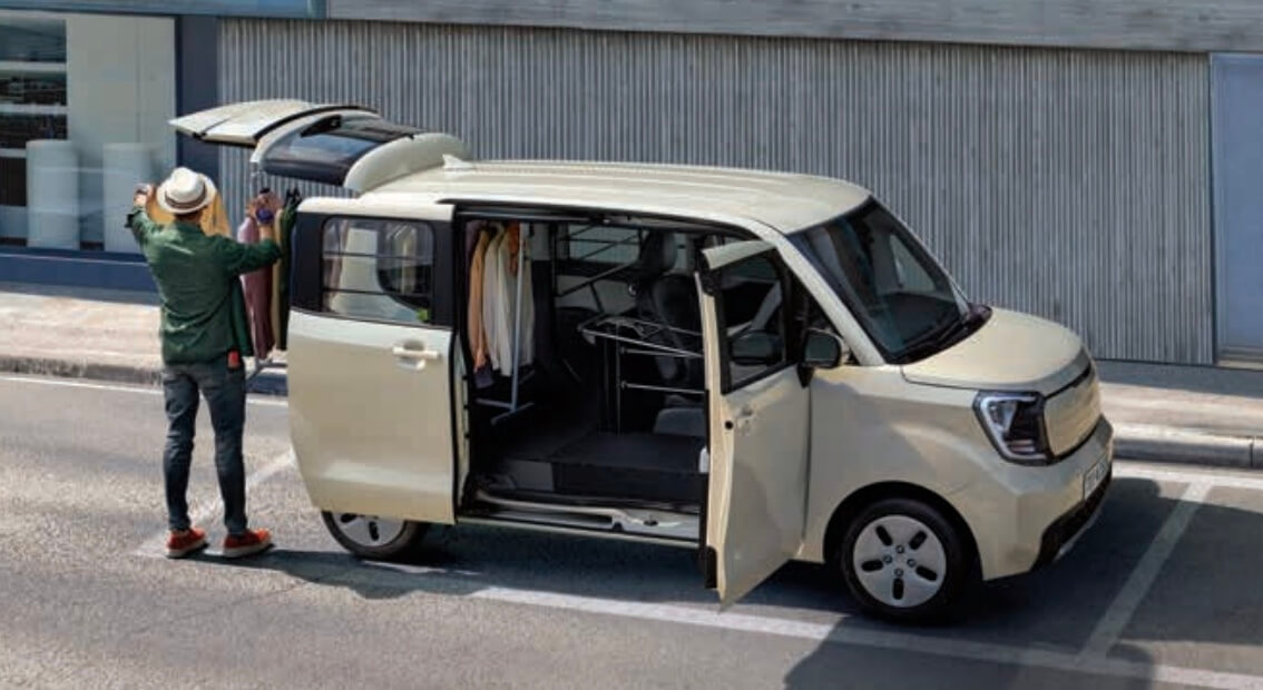 실내 디자인은 내연기관 모델과 큰 차이는 없지만, 10.25인치 LCD 클러스터와 EV9과 비슷한 시동 버튼이 특징이에요. 그리고 기어 레버 자리에는 대한민국 경차 최초로 EPB(오토홀드 포함)가 적용되었답니다! 공조장치는 위로 옮겨졌고, 그 자리에는 수납공간이 제공되고 있어요. 참 신기하죠?!