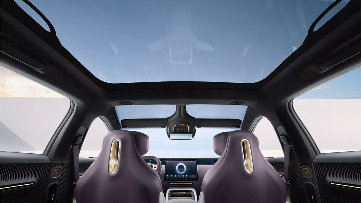 아바타 12의 내부는 미니멀리즘 디자인과 첨단 기술이 조화를 이룹니다. 스포티한 타원형 스티어링 휠 옆에는 태블릿형 센터 디스플레이가 장착되어 있으며, 대시보드 뒤쪽에는 35.4인치 크기의 4K 파노라마 와이드스크린이 주행 정보를 선명하게 표시합니다. :)