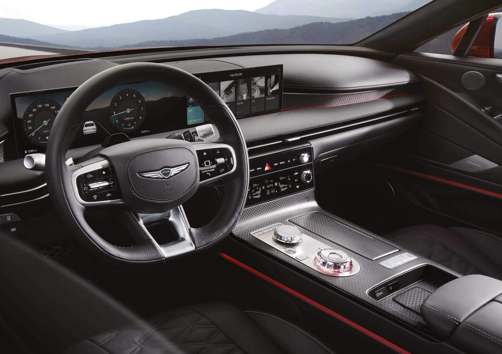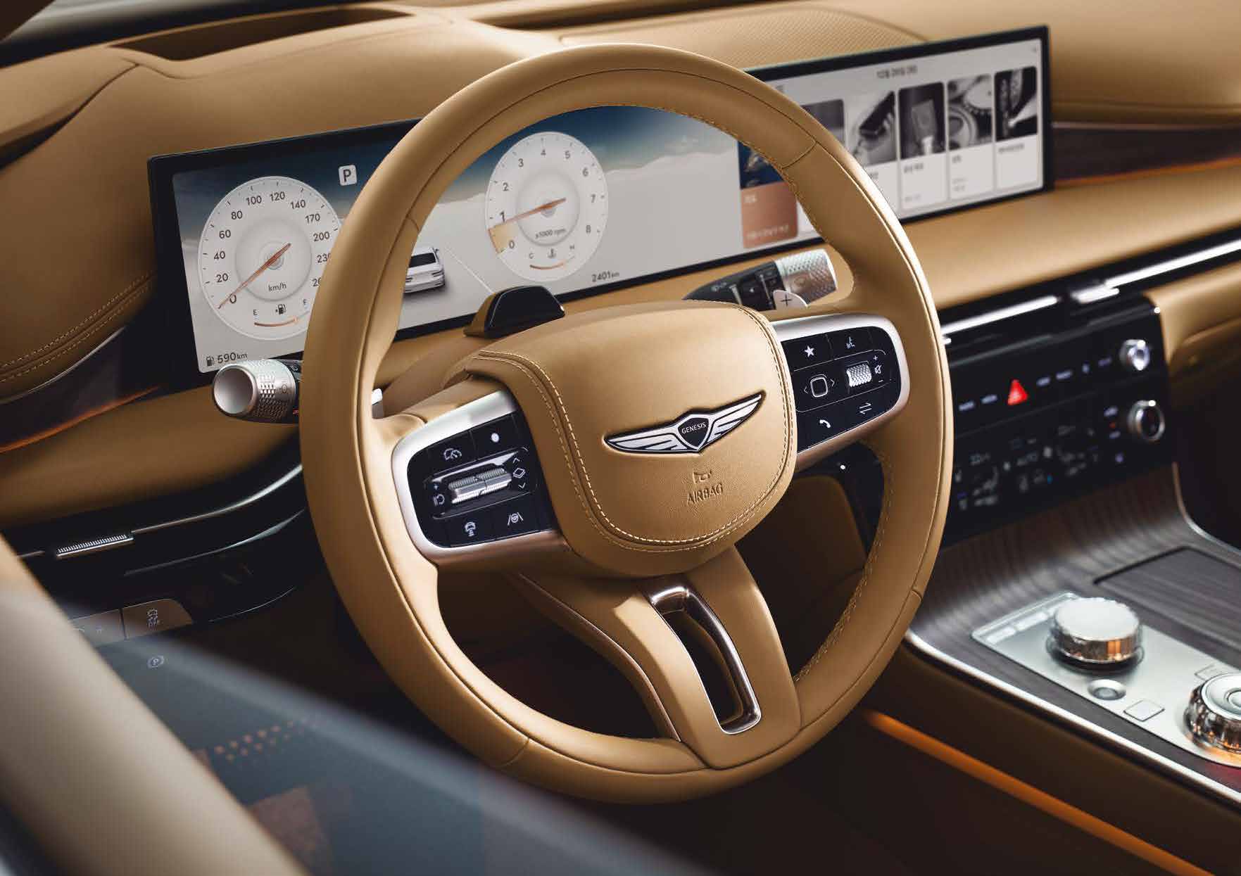 G80의 부분 변경 모델은 실내에서도 현저한 변화를 보여줍니다. 디지털 계기판과 디스플레이가 하나로 연결된 27인치 디스플레이가 주목을 끄는데, 이는 운전자에게 탁월한 가시성과 정보 접근성을 제공합니다. 터치 타입 공조 조작계, 크리스탈 디자인의 전자식 변속 다이얼 및 통합 컨트롤러, 뱅앤올룹슨 고해상도 사운드 시스템 등은 실내의 고급감을 한층 더 높여줍니다. 😍