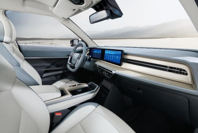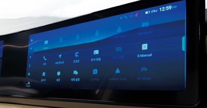 토레스 EVX의 인테리어는 최신 트렌드를 반영한 디자인을 가지고 있습니다. 12.3인치 심리스 듀얼 와이드스크린 디스플레이는 차량 내부의 고급스러움을 더해줍니다. 또한, 에어벤트와 IP 부분의 수정, 우드 장식, 기어 레버의 토글타입 SBW 적용 등으로 BMW iX와 유사한 분위기를 풍깁니다.^^