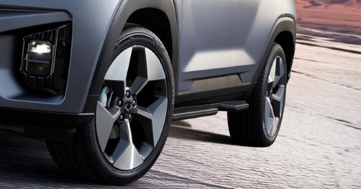 토레스 EVX의 디자인은 기존 토레스와는 다르게 전면 범퍼와 헤드램프가 완전히 새롭게 디자인되었습니다. 전기자동차 특성상 그릴이 없지만, DRL을 분할하여 토레스의 디자인 요소를 계승하고 있습니다. 특히, 20인치 휠 디자인은 전기차의 특성을 반영하여 공기저항을 최소화하였습니다.!