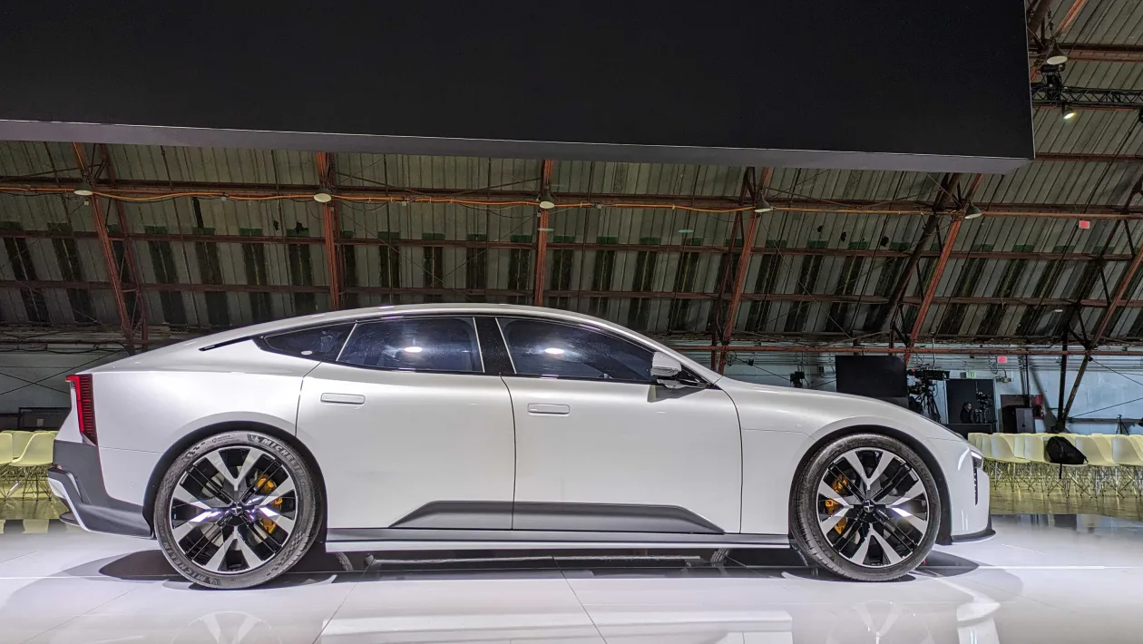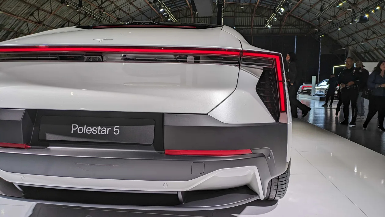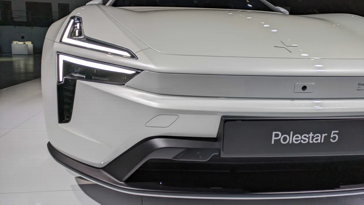 폴스타5는 전면부에서 폴스타 4와 유사한 분할 헤드램프를 특징으로 하고 있습니다. 전통적인 그릴이 없는 대신, 전면부의 선명한 라인과 형상은 이 차량에 독특한 개성을 부여합니다. 😮