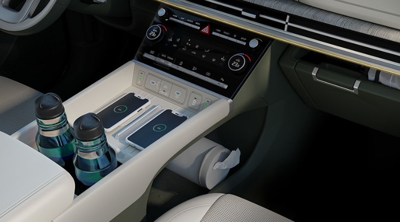 새로운 인테리어는 UV-C 살균트레이, 스마트폰 듀얼 무선충전 시스템 등 유용한 편의사양을 적용해 SUV와 같은 실용성을 갖춘 세련된 사용자 경험을 제공한다. 12.3인치 디지털 클러스터와 인포테인먼트 시스템을 아우르는 싼타페 최초의 파노라믹 커브드 디스플레이는 운전자의 시인성을 높이고 고급스러운 느낌을 연출합니다.