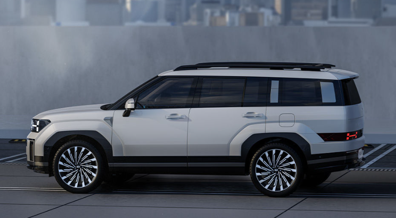 길어진 휠베이스는 All-New Hyundai Santa Fe에 웅장함을 부여합니다. 깔끔한 측면 조각은 대담한 루프라인, 펜더 주변의 넉넉한 볼륨, 견고한 휠 아치, 짧아진 전면 오버행 및 대담하게 디자인된 21인치 휠로 보완됩니다.