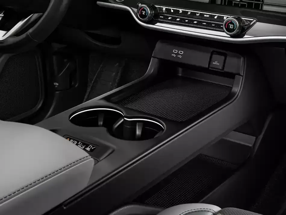 차량의 내부를 들여다보면 육간 혼 커버의 스티어링 휠 뒤에는 11인치 클러스터와 HUD가, 그리고 11.3인치 센터페시아 디스플레이가 장착되어 있습니다^^ 공조기는 물리식 버튼을 사용하여 직관적으로 조작할 수 있습니다~! 기어봉은 컬럼식으로 심플한 센터 콘솔이 마련되어 있네요.