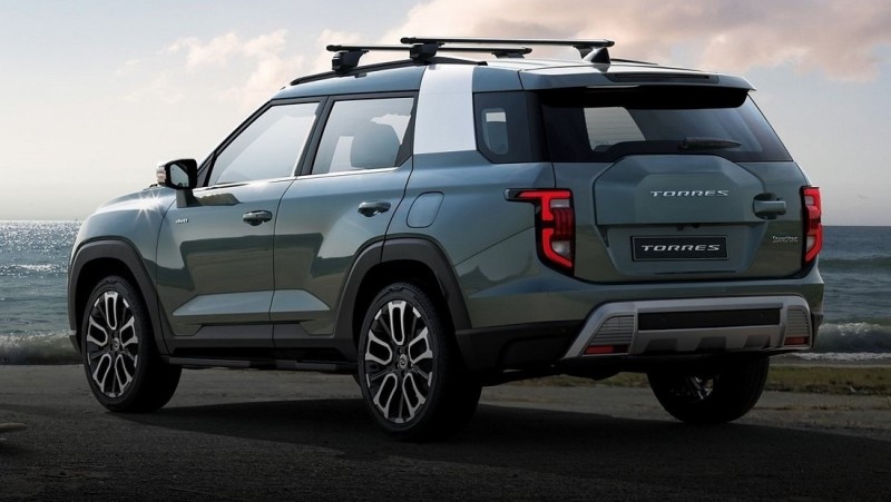 측면에서 보면, 차체 앞쪽에서 B필러까지의 유려한 선은 기존 모델과의 연속성을 보여주면서도, B필러 이후 낮고 긴 스포티한 실루엣이 새로운 매력을 발산합니다. 😊 윈도우 면적의 변화는 이러한 디자인을 더욱 돋보이게 하며, 토레스 쿠페만의 독특한 캐릭터를 강조합니다.
